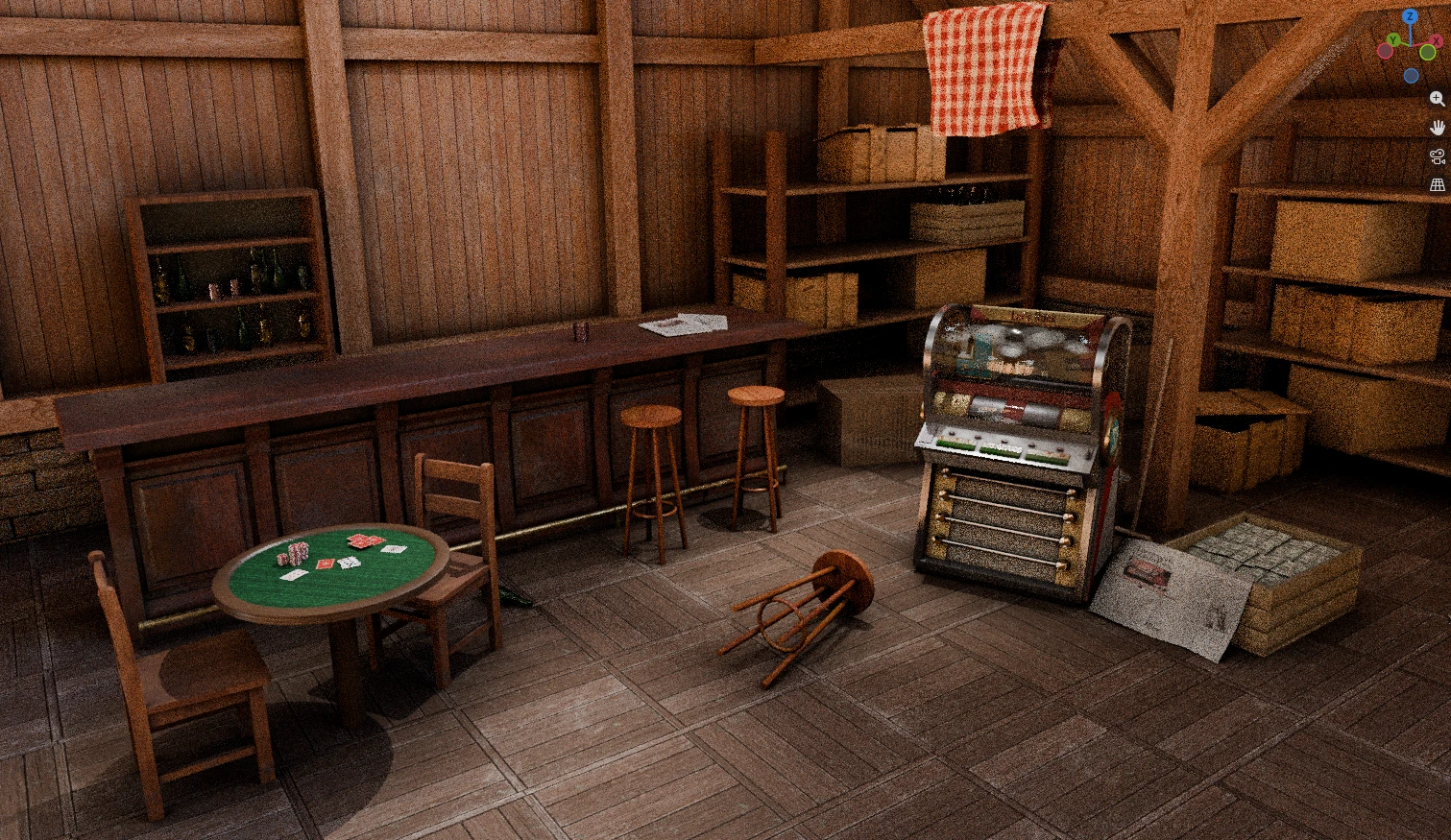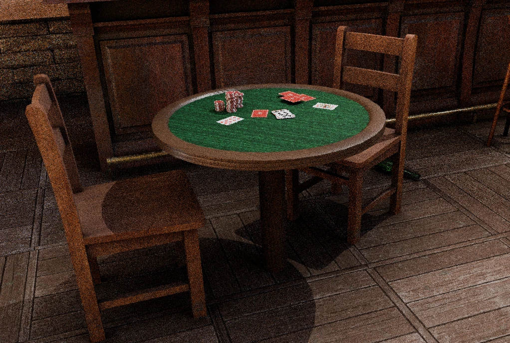 Могу гордиться оптимизацией и моделью музыкального автомата, в моей сцене меньше 25к треугольников, при том что у меня там куча бутылок валяется по 800 полигонов (ИХ ВСЁ РАВНО НЕ ВИДНО) Ну и мест где прям сэкономил на сетке почти нет (ну кроме покерного стола, но я его полностью переделал 6 часа назад)