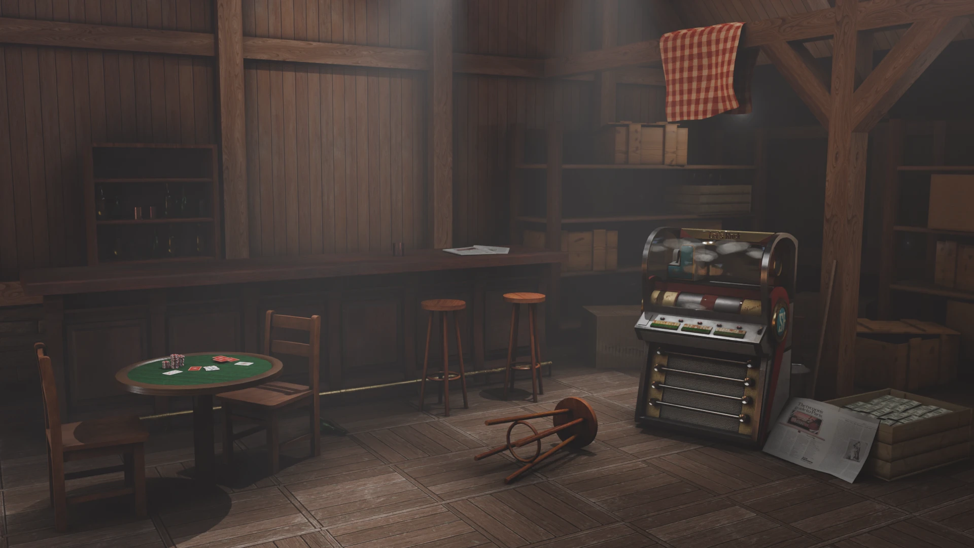 Game-ready сцена. Логово мафии в стиле 70-ых годов.