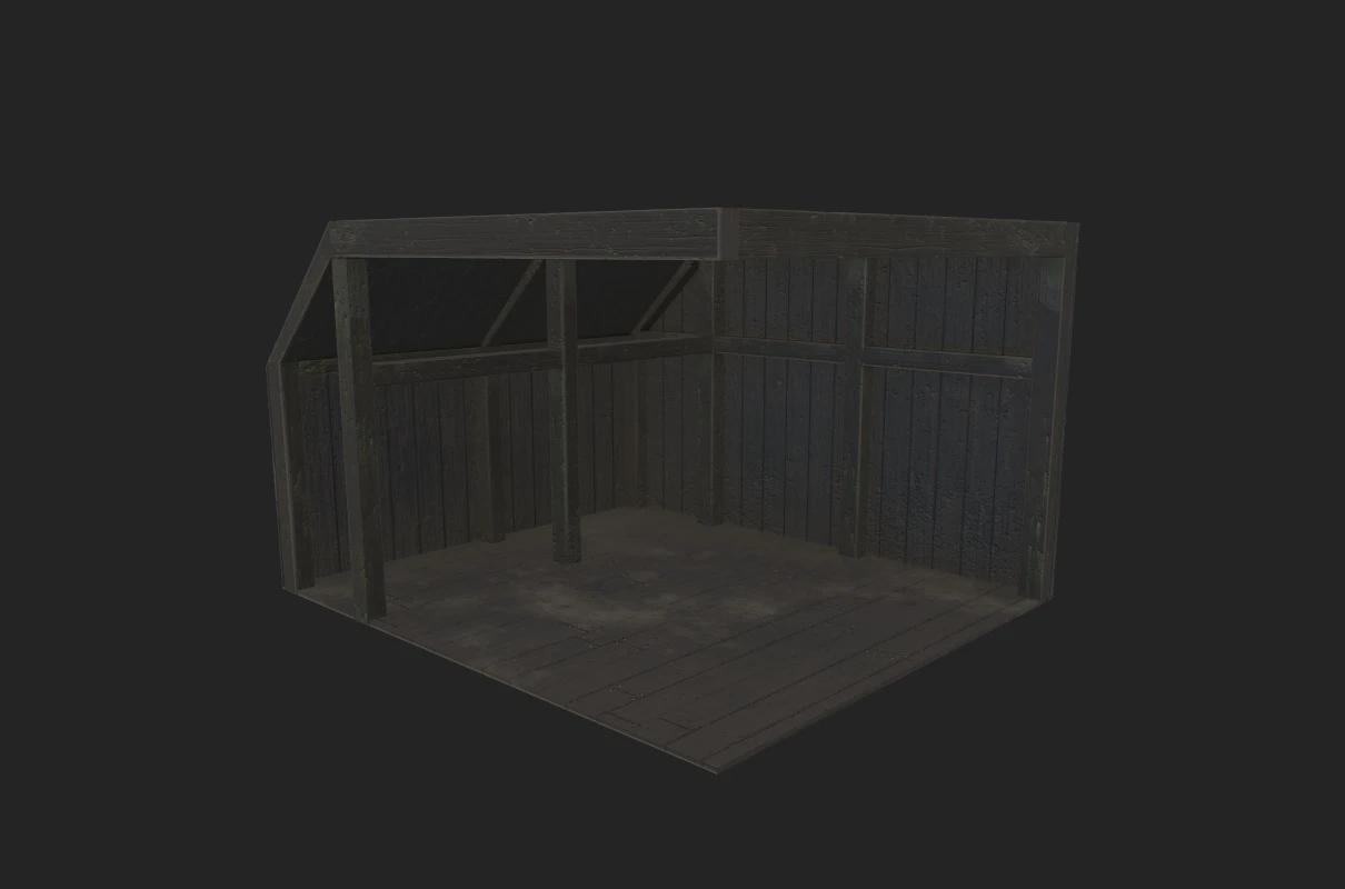 Сцена для рендера и сам амбар.
