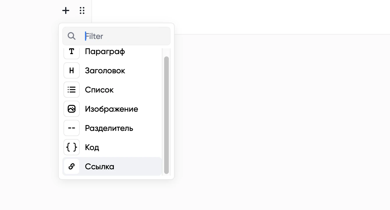 Друзья, мы рады сообщить, что редактор был переведен на русский язык, помимо этого мы добавили отдельный инструмент, который добавляет блок-ссылку с предпросмотром.