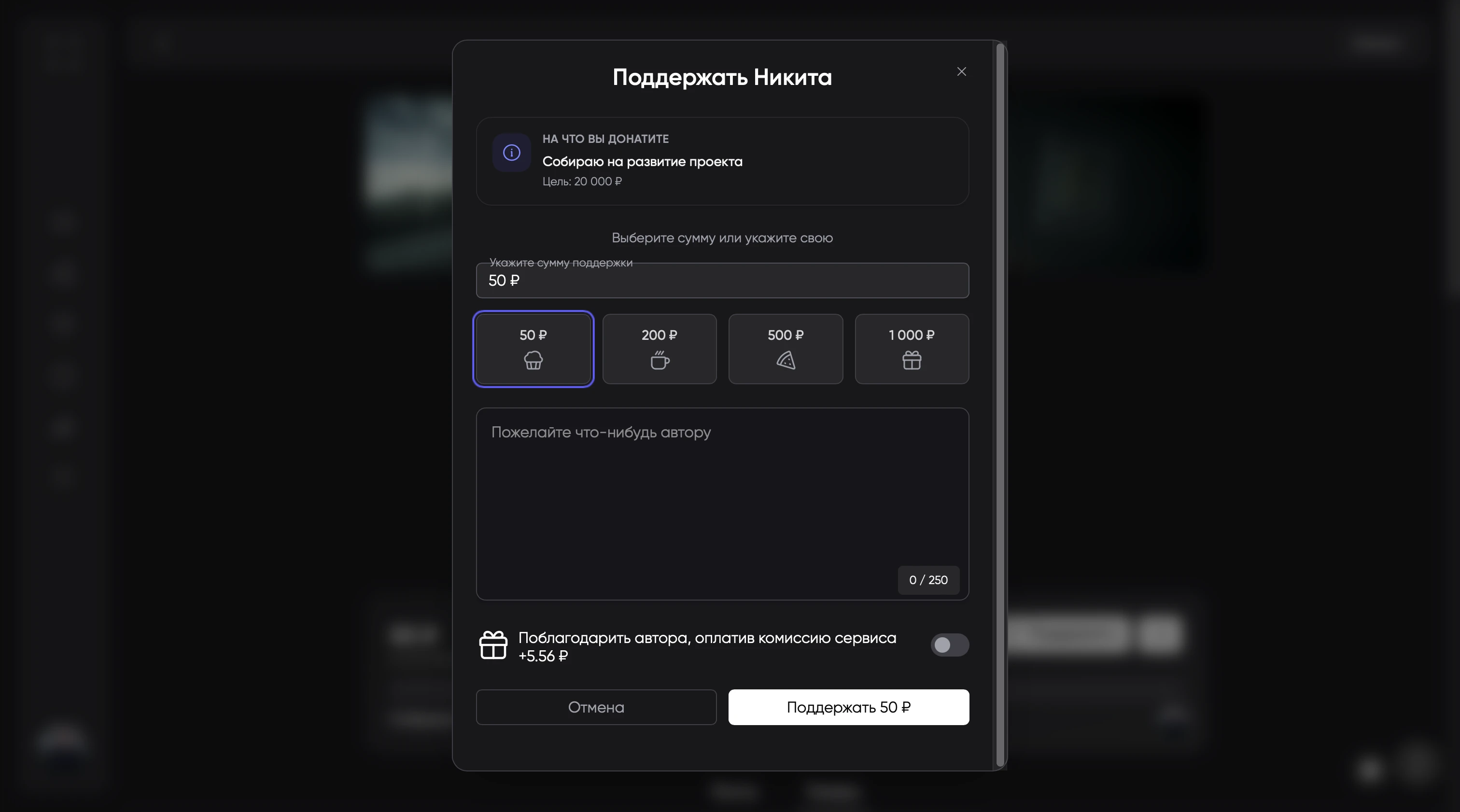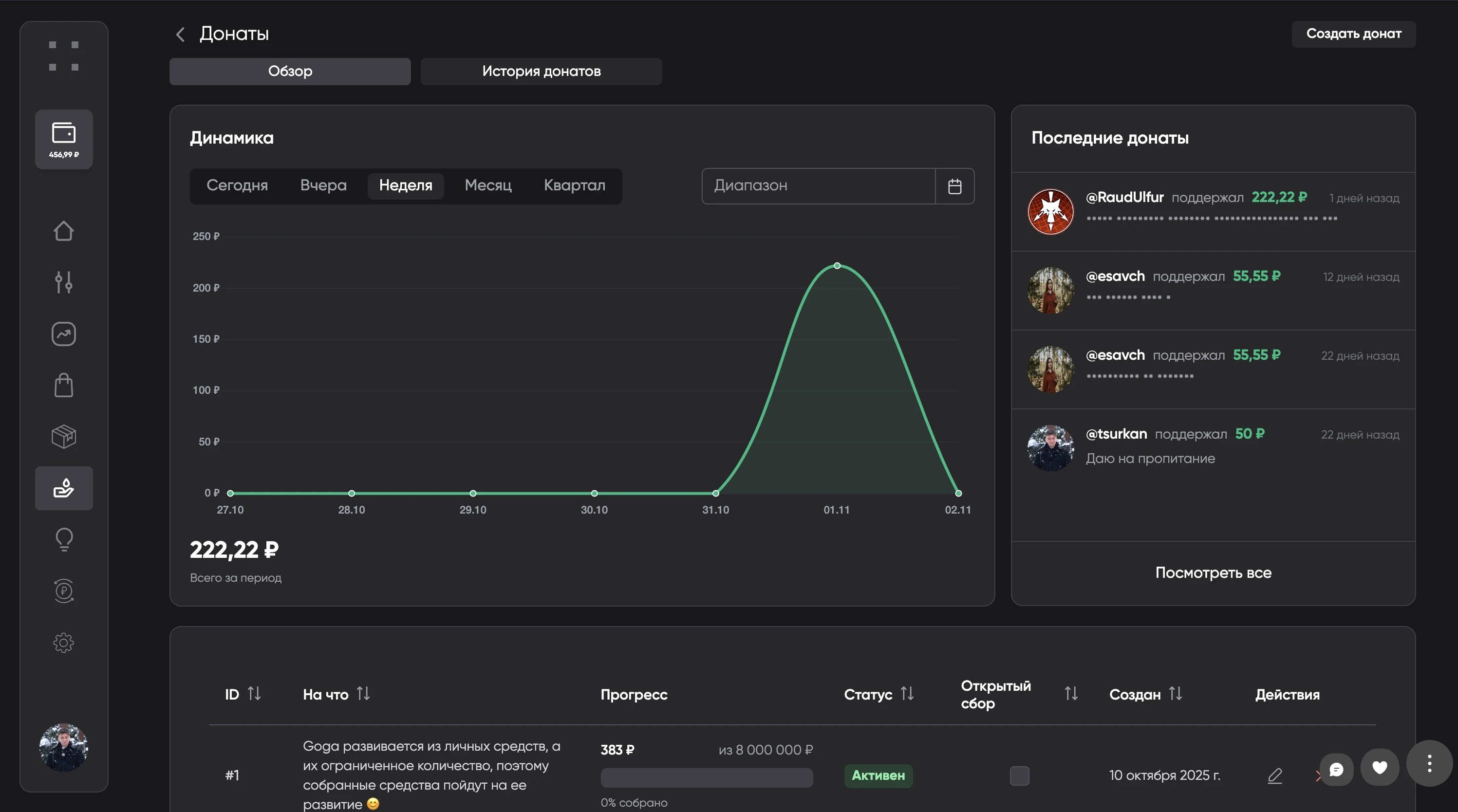 - Возможность поделиться ссылкой на донат