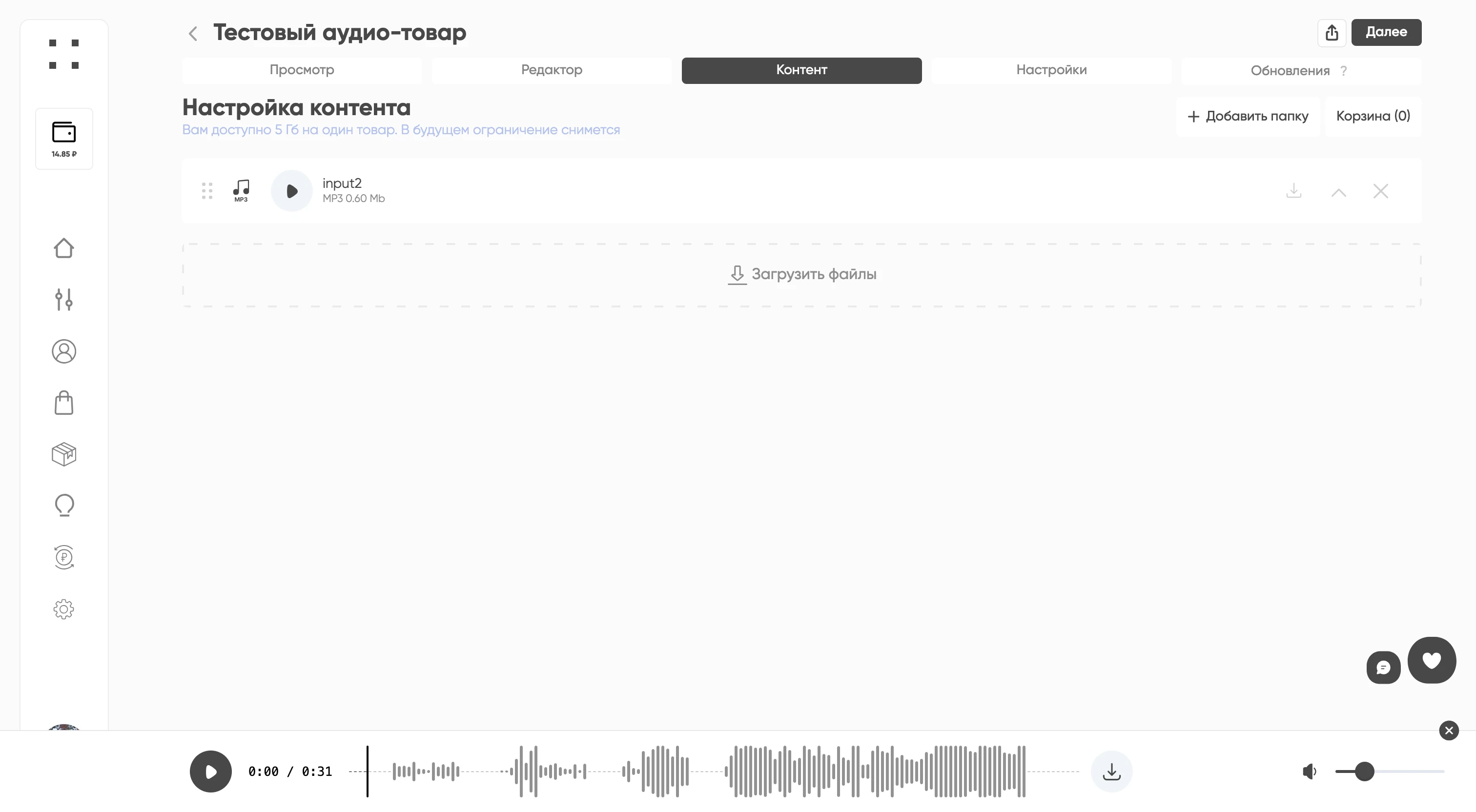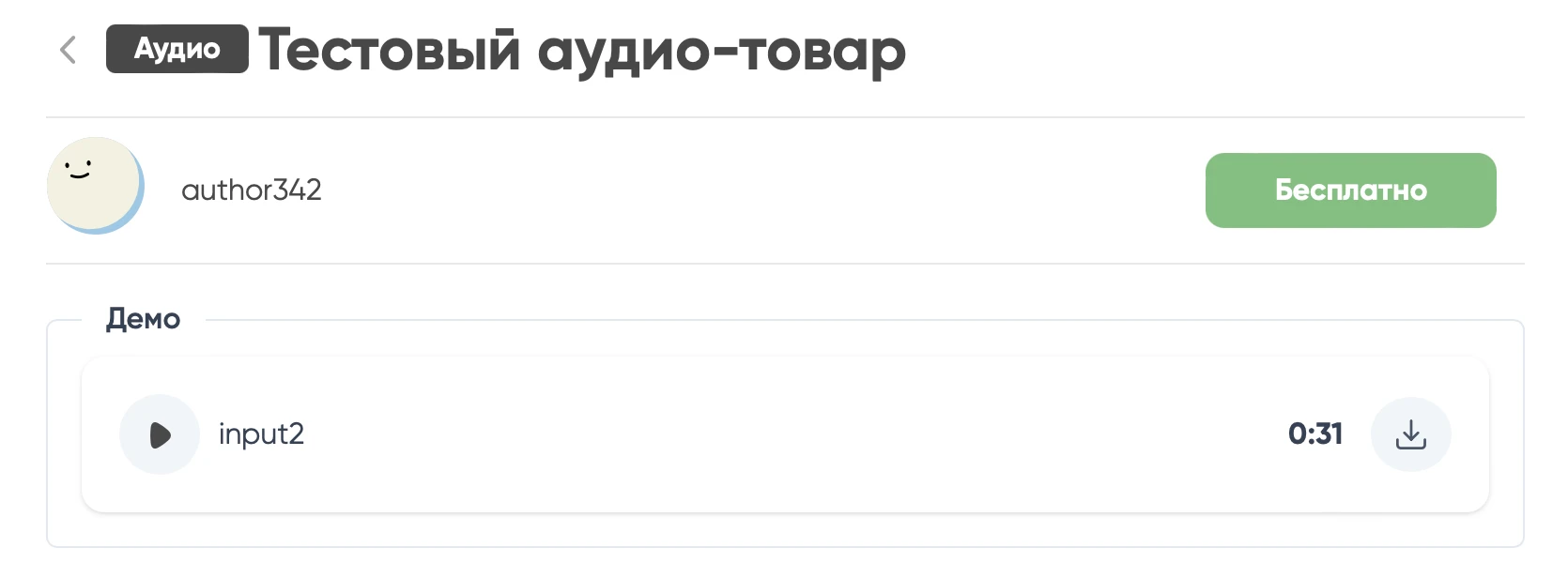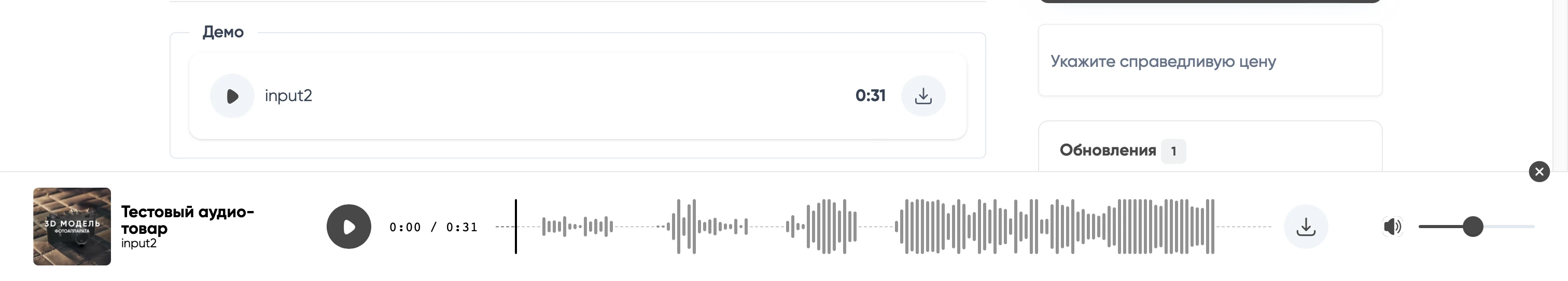 Теперь, когда вы создаете аудио-товар (при создании товара будет возможность выбрать тип товара), то когда вы загружаете в контент какой-то звуковой файл до 10 минут, то для него будет формироваться демо.
