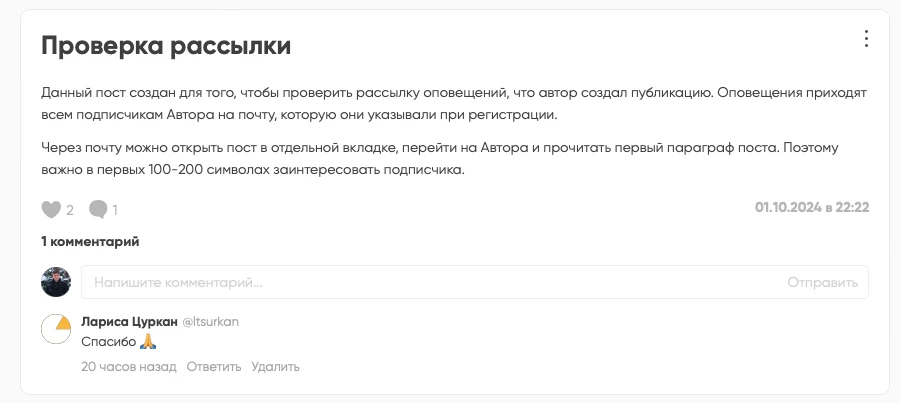 - Комментарии к постам