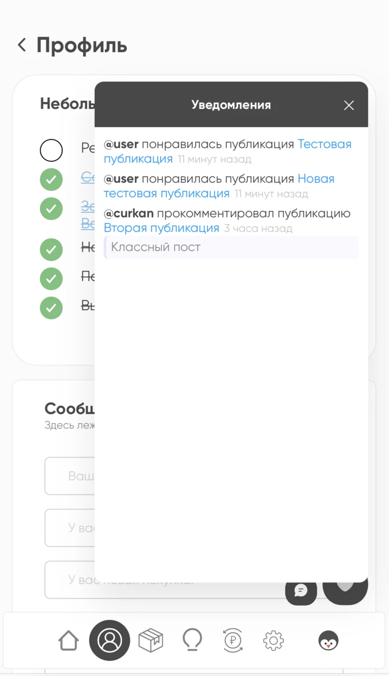 - Виджет уведомлений